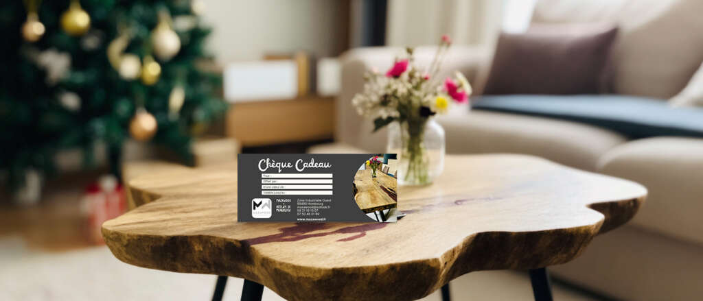 Le bon cadeau Mazawood est la solution idéale pour faire plaisir en laissant le choix. Elle permet d’accéder à l’ensemble de nos créations : tables en bois massif, bancs, consoles, mobilier intérieur/extérieur, objets déco ou projets sur-mesure.