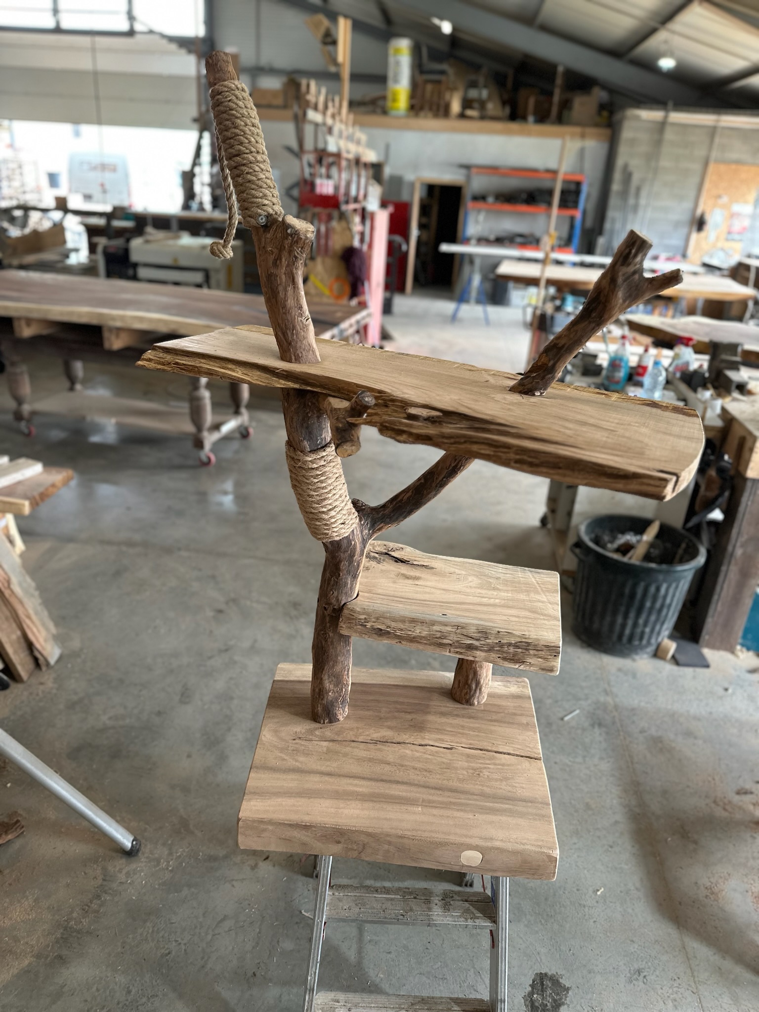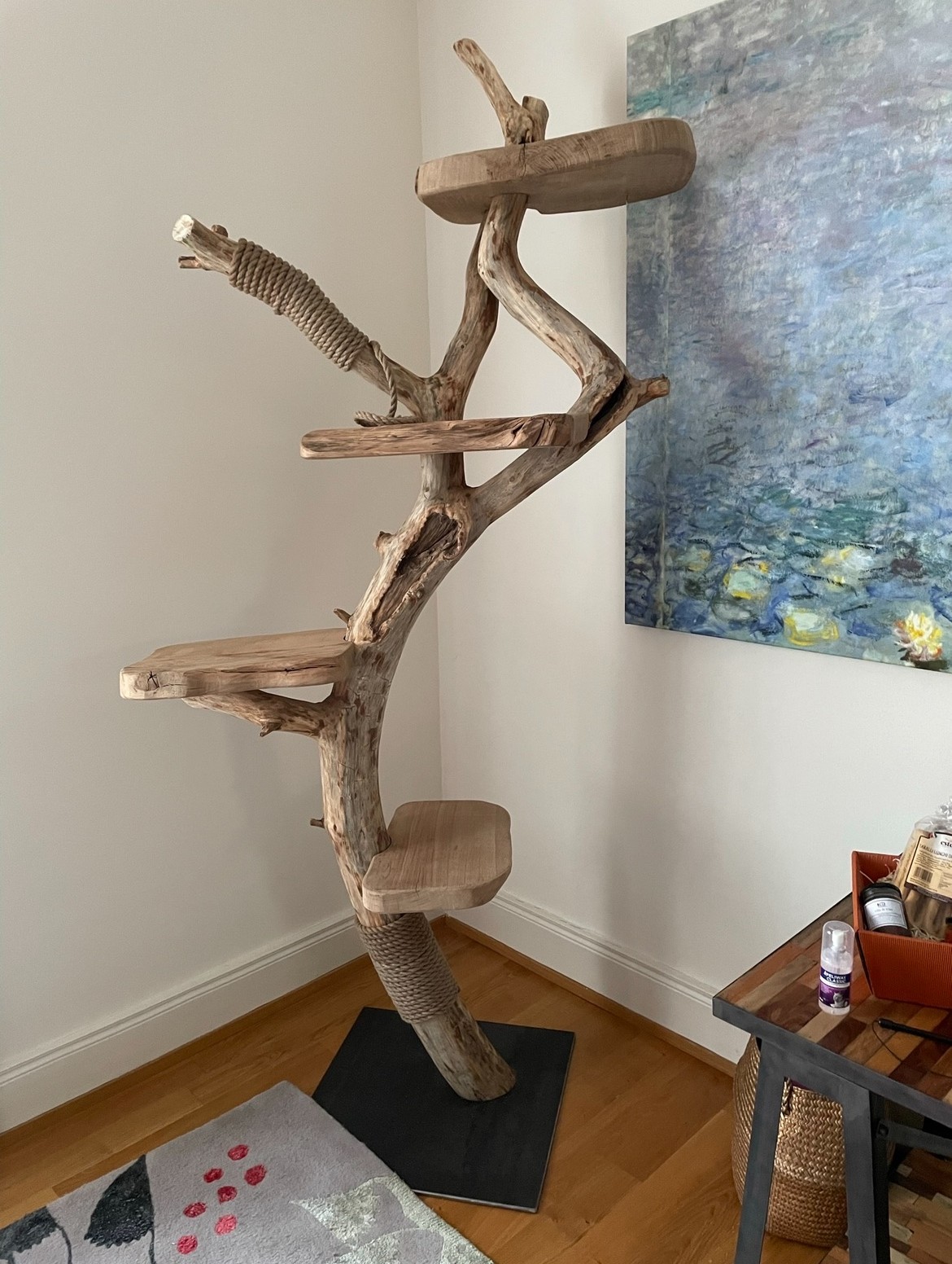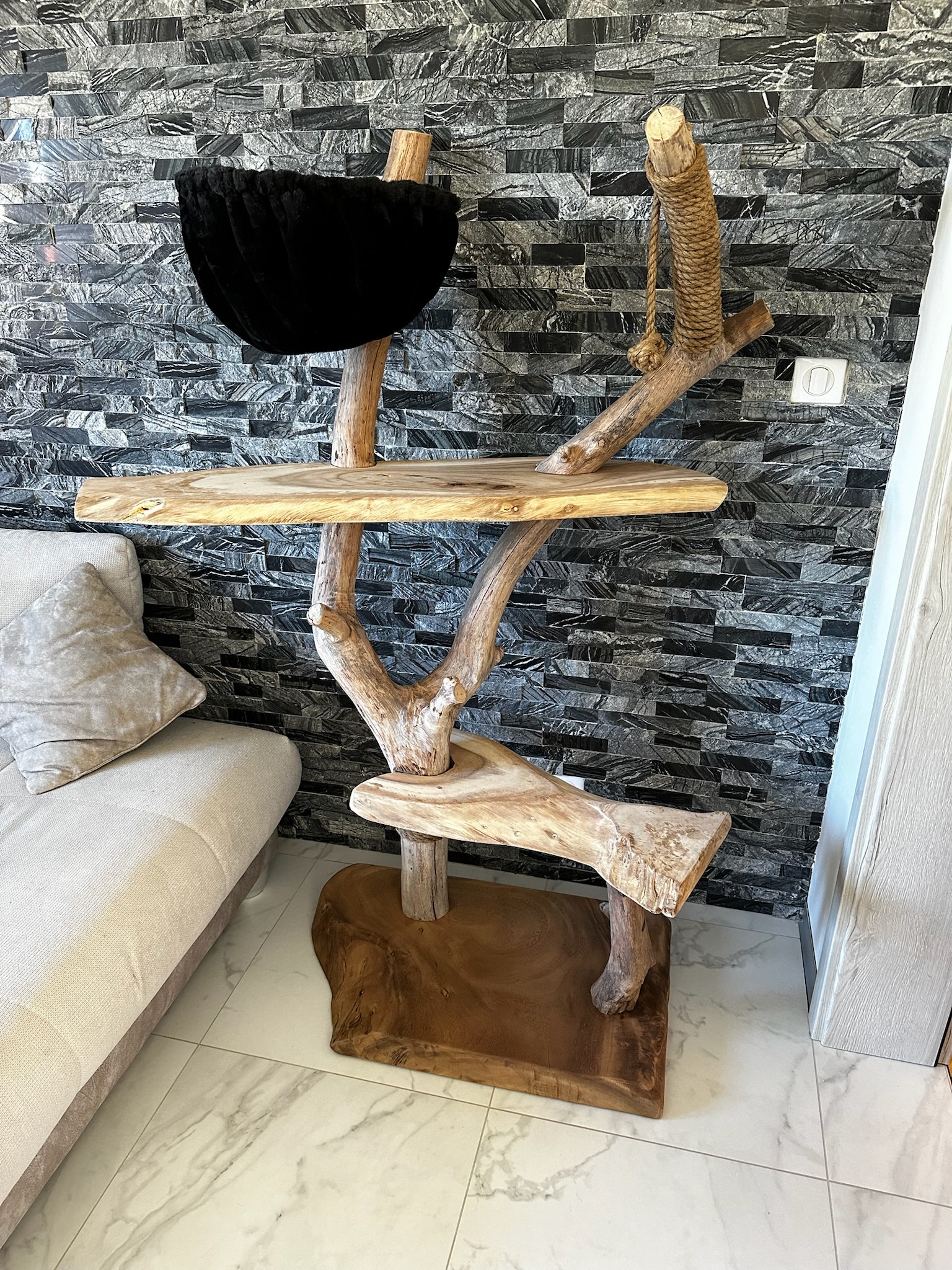 Chaque arbre à chat sur mesure est pensé pour répondre aux besoins de votre animal tout en s’intégrant parfaitement dans votre décoration intérieure. Grâce à notre savoir-faire artisanal, nous travaillons avec des matériaux nobles comme le bois massif (chêne, robinier, palissandre ou suar) et des finitions haut de gamme, afin de créer une pièce à la fois fonctionnelle, esthétique et durable.
