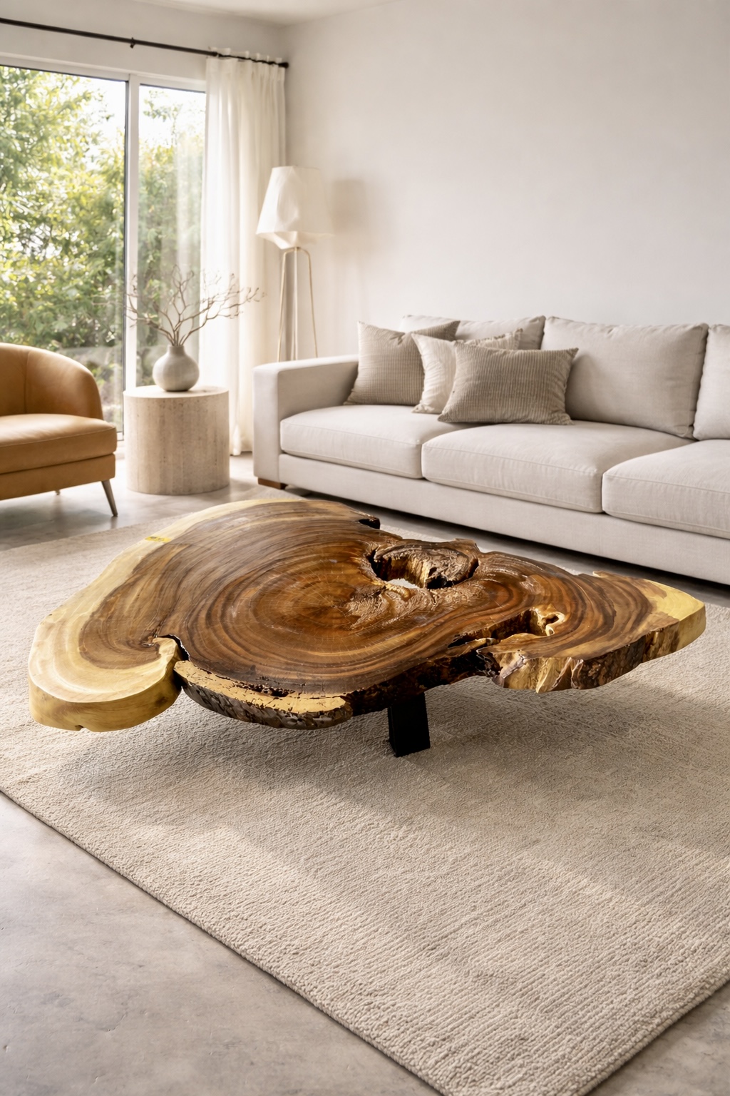 Authenticité : Chaque table est une pièce unique, façonnée dans une seule et même tranche d’arbre