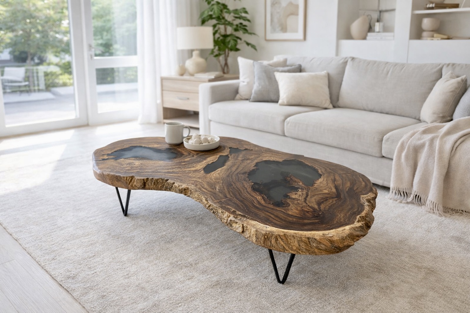 - Authenticité : Chaque plateau époxy est unique : jeux de transparence, variations de teintes et contours naturels propres au suar