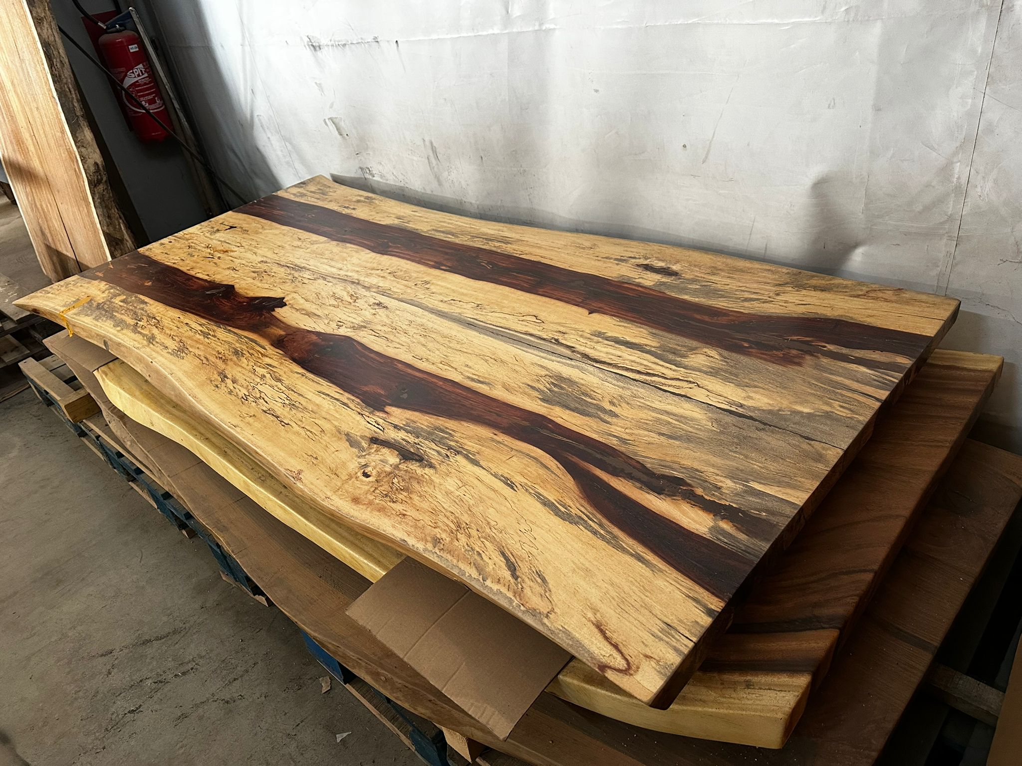 Les chants naturels ont été volontairement conservés et accentués, renforçant l’aspect brut et vivant du bois. Les fissures naturelles ont été retravaillées et enjolivées, non pas pour les masquer, mais pour les sublimer, en respectant l’histoire du bois et son évolution.